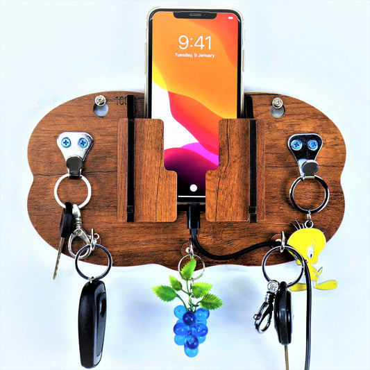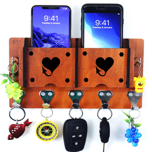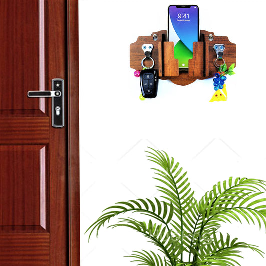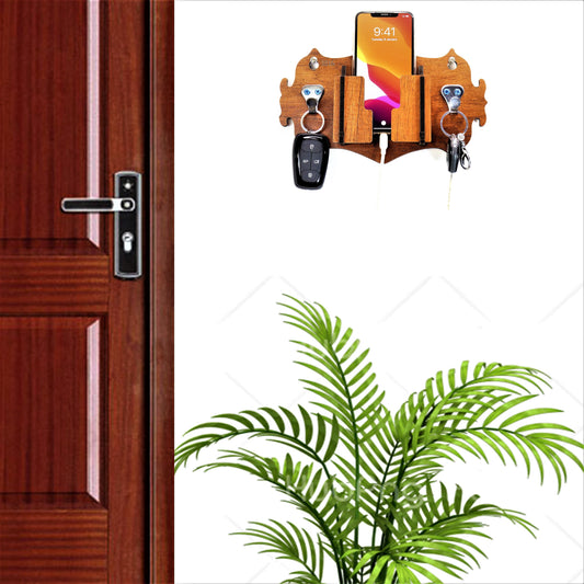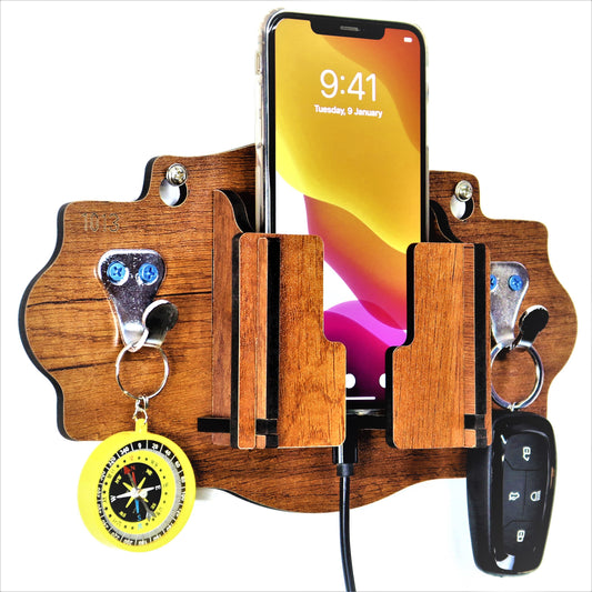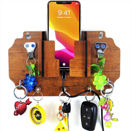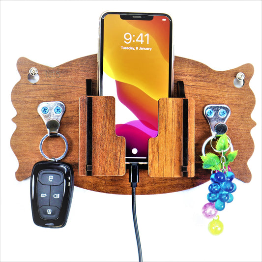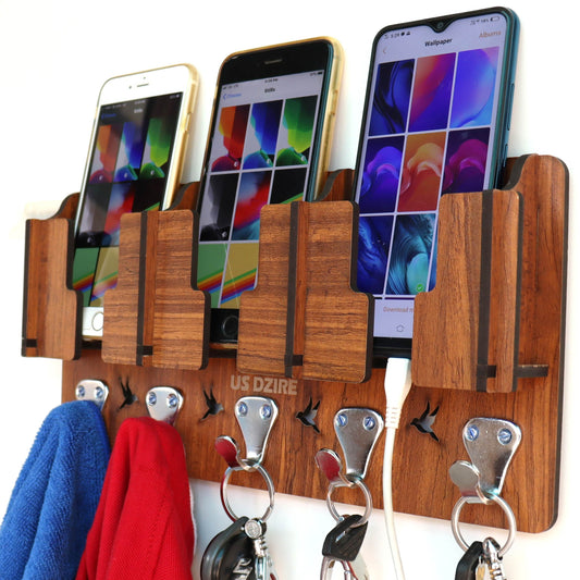 US DZIRE™ 1015 Antique Mobile Charging Stand Key Holder, Cloth Hanger Handcrafted Art For Home Decor Living Room Bedroom Wood Key Holder