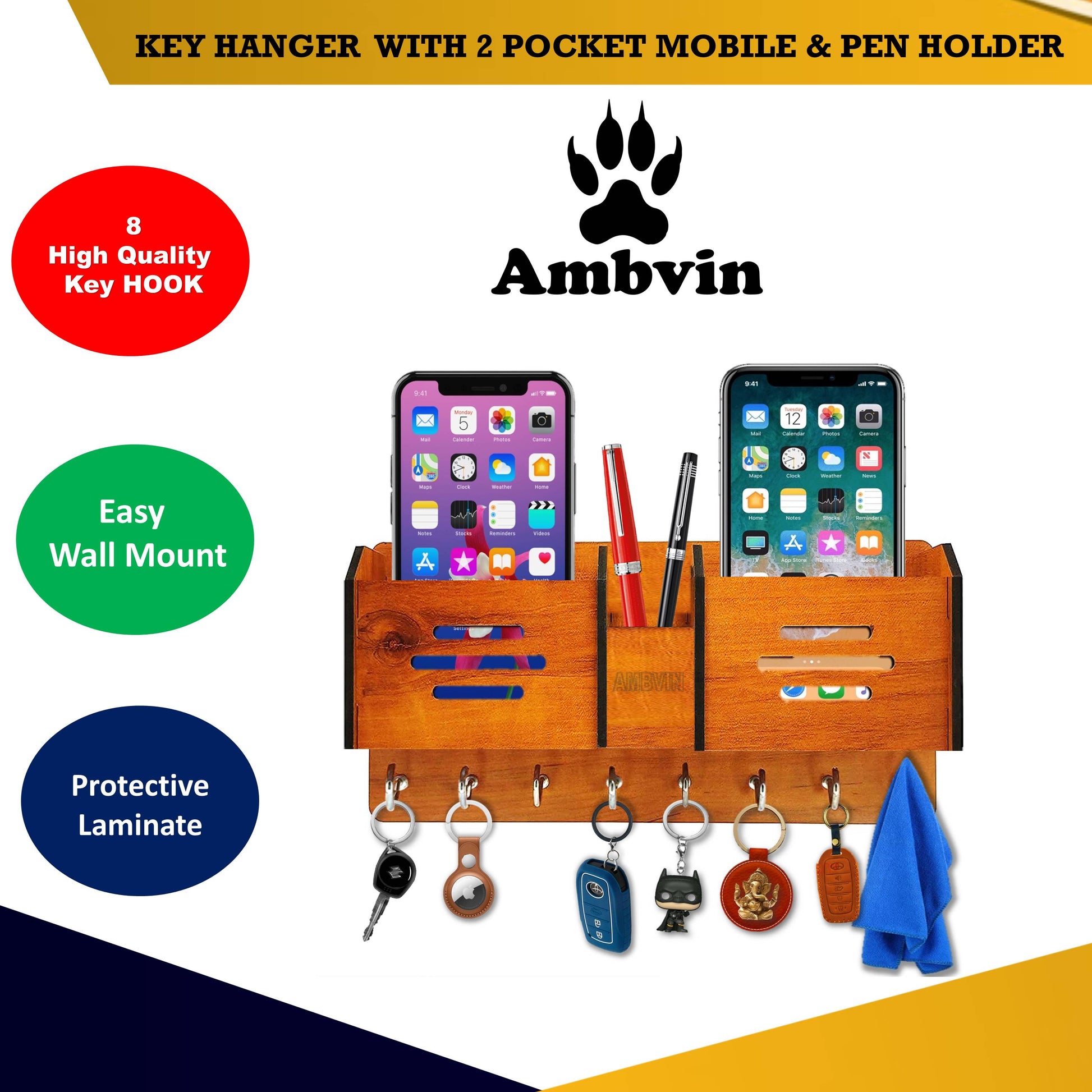 TIME MANAGEMENT: Does a messy work space make you anxious or irritated? Conveniently keep all your essential belongings organized on our gorgeous wooden Key holder! It is designed to hold many keychains. keep your space neat and clutter free. Accessories shown in the pictures are not included. STRONG STRUCTURE: The organizer is well-constructed, sturdy, durable to use for many years. Heavy duty hook weight capacity up to 10 kg. 100% QUALITY. For making these stands the master uses only the best high - quality material. The excellent handcraft has a smooth texture with a special protective laminate, which protects the product from excessive moisture or dryness and prevents all kinds of damage. SUITABLE FOR: living room, Security room, gate, kitchen, home & office anyplace. Daily reminders, all in one handy location! MOUNTING: Mounting screws & grip included in the product box.