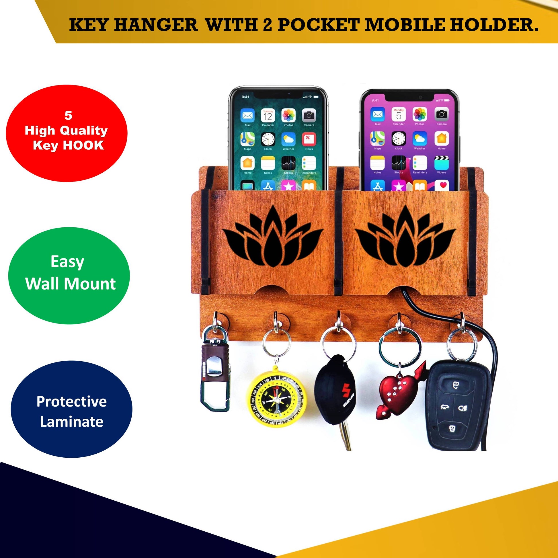 TIME MANAGEMENT: Does a messy work space make you anxious or irritated? Conveniently keep all your essential belongings organized on our gorgeous wooden Key holder! It is designed to hold many keychains. keep your space neat and clutter free. Accessories shown in the pictures are not included. STRONG STRUCTURE: The organizer is well-constructed, sturdy, durable to use for many years. Heavy duty hook weight capacity up to 10 kg. 100% QUALITY. For making these stands the master uses only the best high - quality material. The excellent handcraft has a smooth texture with a special protective laminate, which protects the product from excessive moisture or dryness and prevents all kinds of damage. SUITABLE FOR: living room, Security room, gate, kitchen, home & office anyplace. Daily reminders, all in one handy location! MOUNTING: Mounting screws & grip included in the product box.