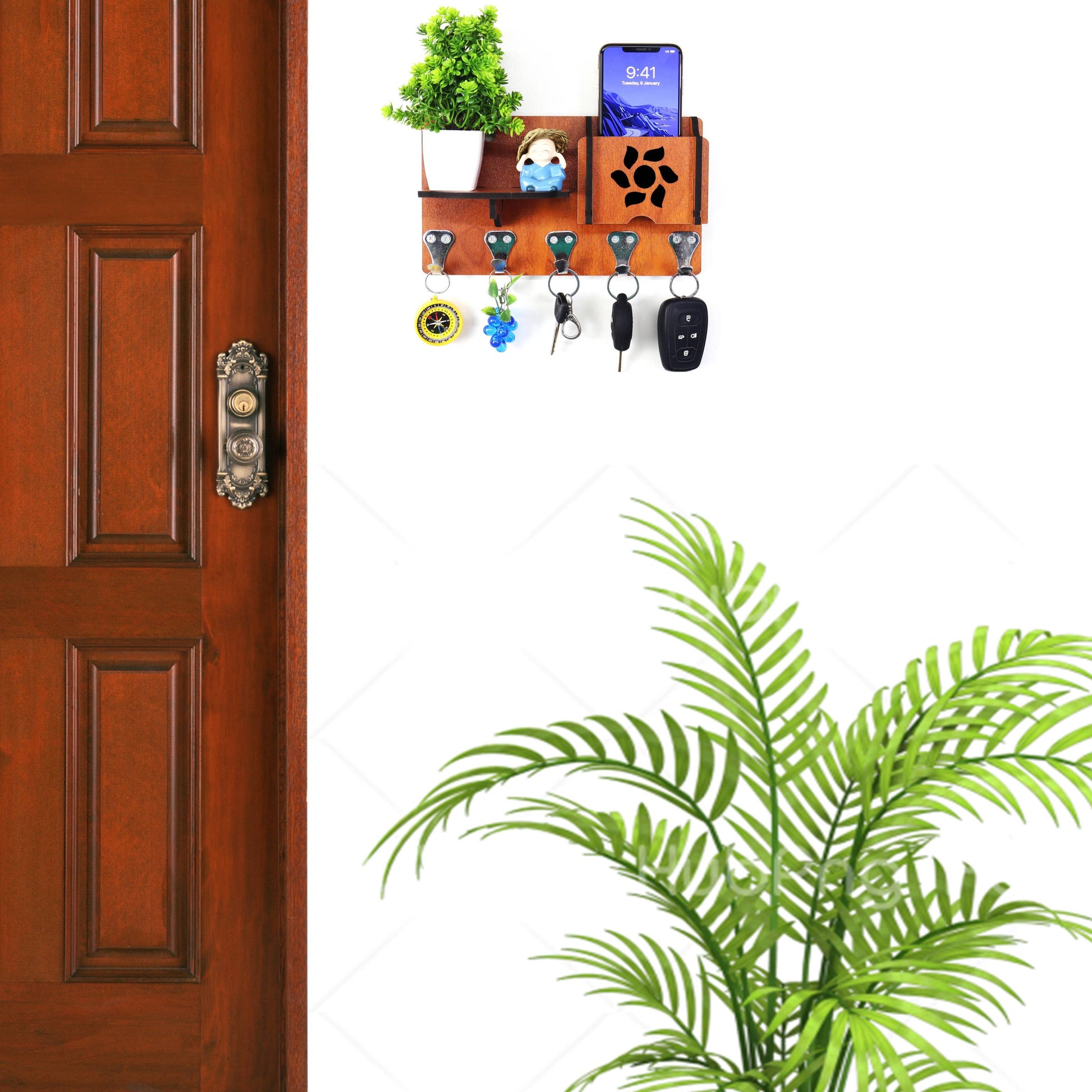 US DZIRE™ 410 Premium Key Holder For Home & Office Wood Key Holder (5 Hooks, Brown)
