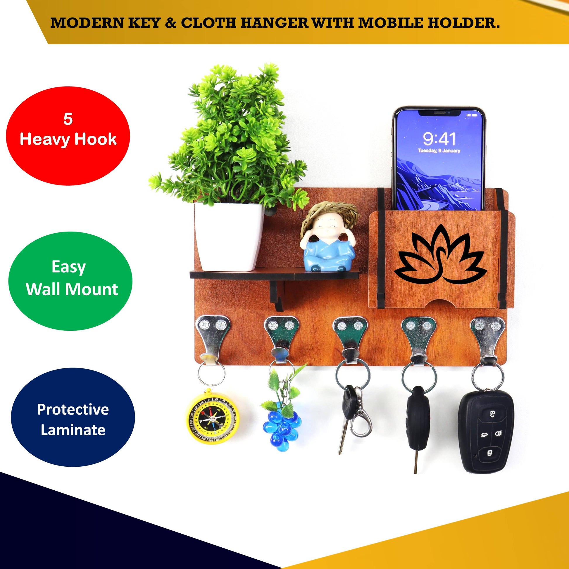US DZIRE™ 443 Decorative Key Hanger (Brown) Wood Key Holder (5 Hooks, Brown)