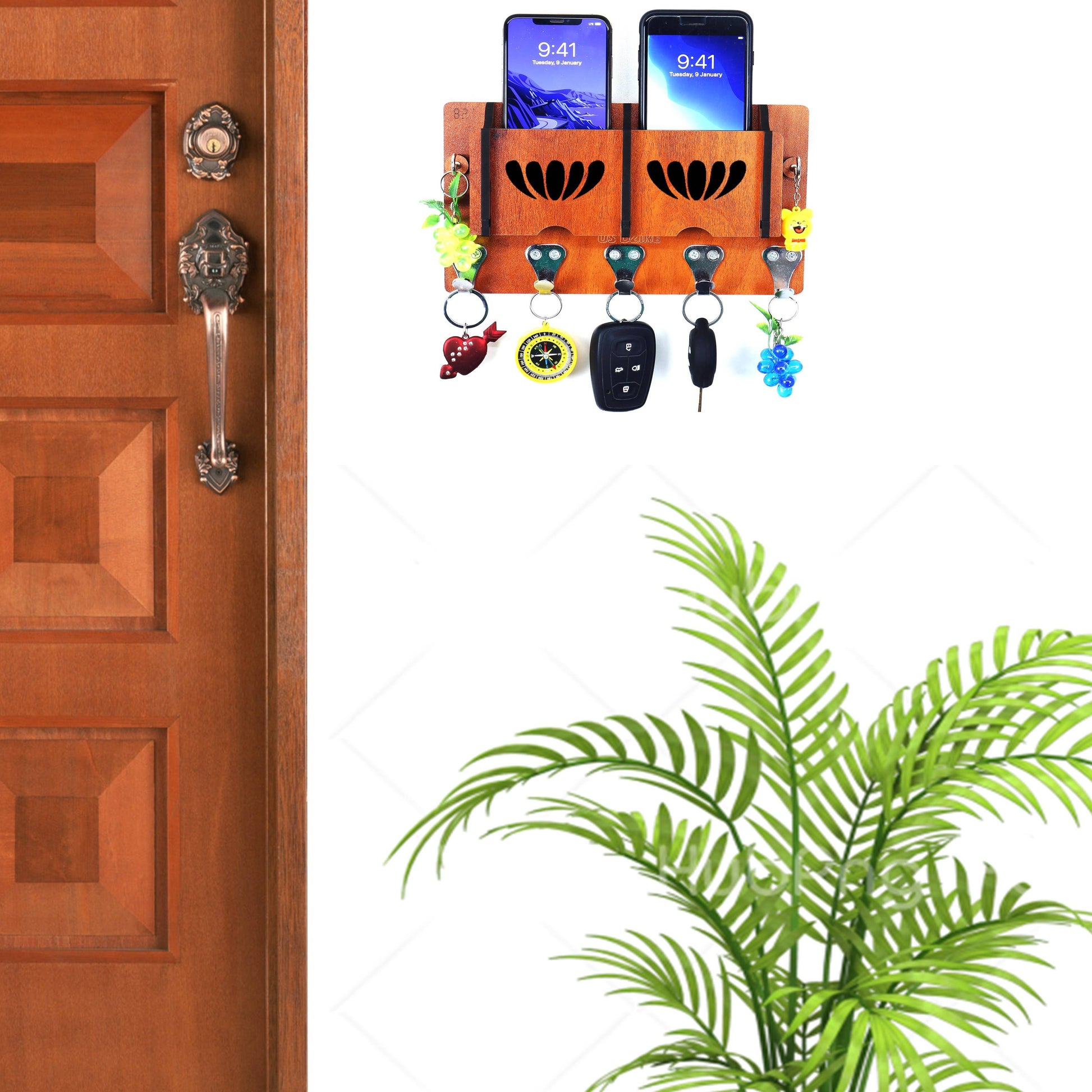 US DZIRE™ 51 Premium Key Holder For Home & Office Wood Key Holder (7 Hooks, Brown)