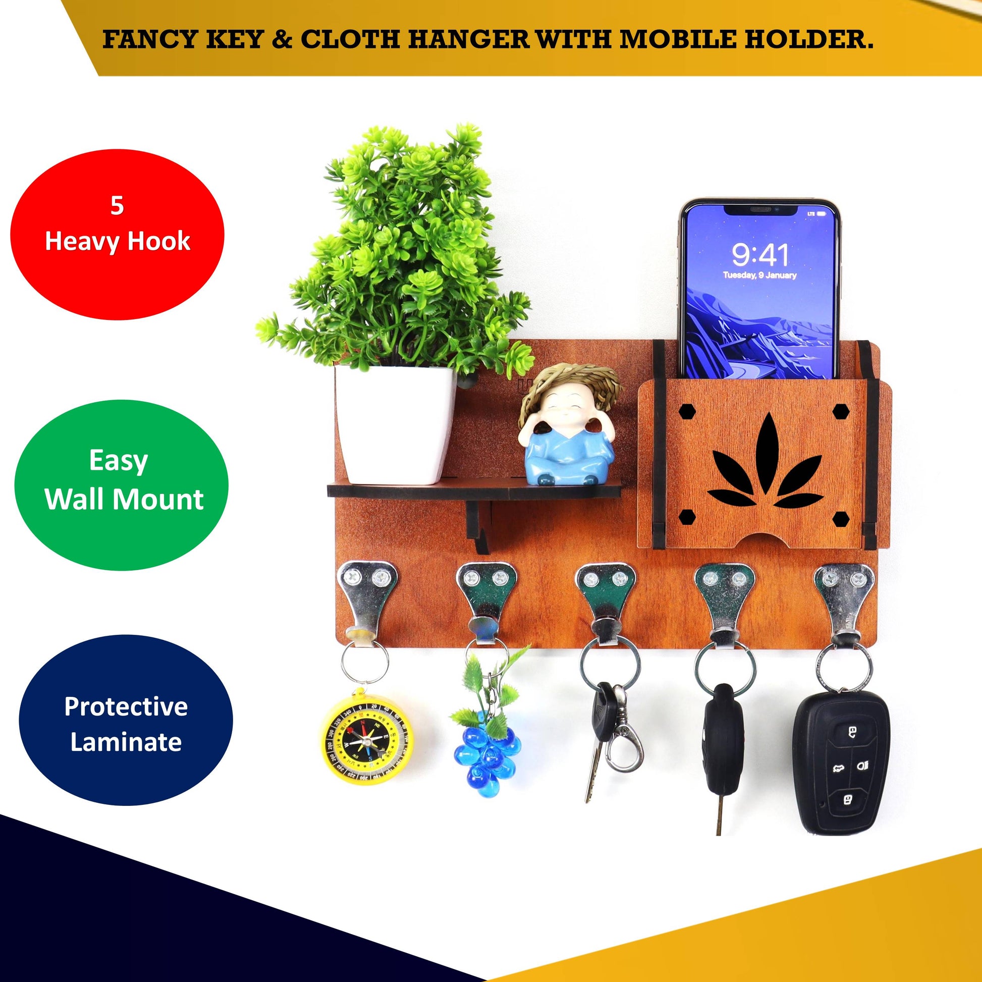 US DZIRE™406 Premium Key Holder For Home & Office Wood Key Holder (5 Hooks, Brown)